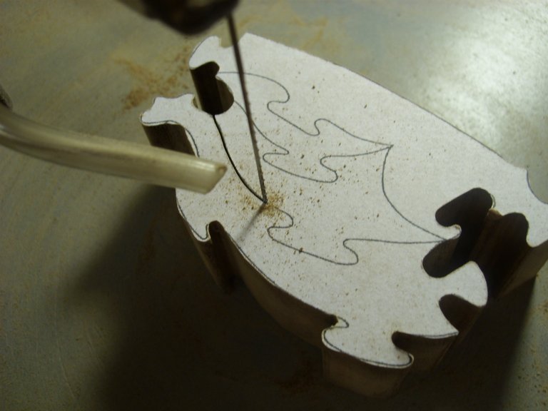Von außen nach innen werden die Teile auseinandergesägt. Dabei muss darauf geachtet werden, dass die letzten Puzzleteile noch so groß sind, dass sie beim Sägen gut festgehalten werden können.