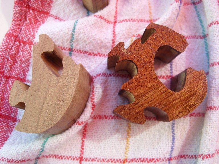 Hier ist zu sehen, wie viel das Finish ausmacht: Links das ungeölte Holz, rechts mit Leinöl eingerieben.