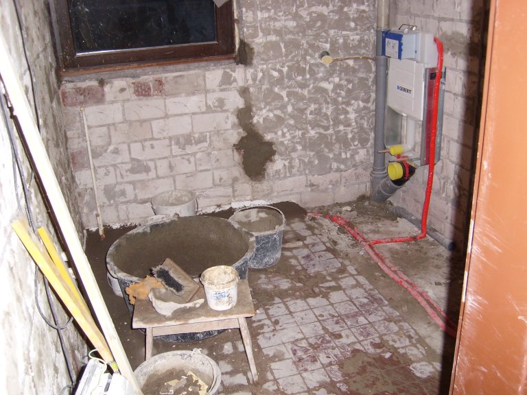 Da wir nun schon einmal dabei waren, ließen wir auch gleich die Wasserleitungen erneuern. Alles andere wäre ein zu großes Risiko für die unter dem Bad im Erdgeschoß liegende Einbauküche gewesen.