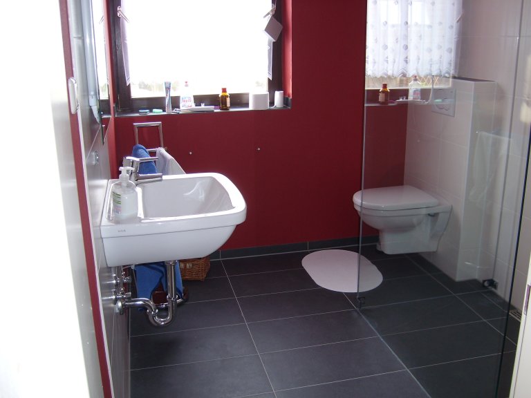 Jetzt fehlen noch Schränke und eine Tür, dann ist das Bad perfekt!